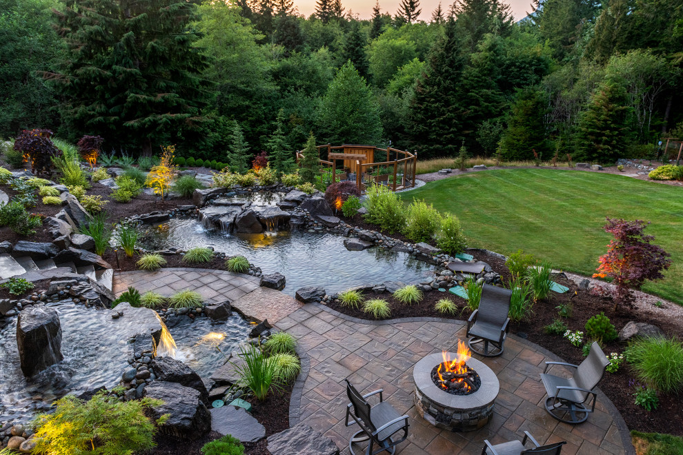 - Estanques de Retención: Creamos pequeñas lagunas ornamentales que actúan como reservorios naturales y atraen aves locales.